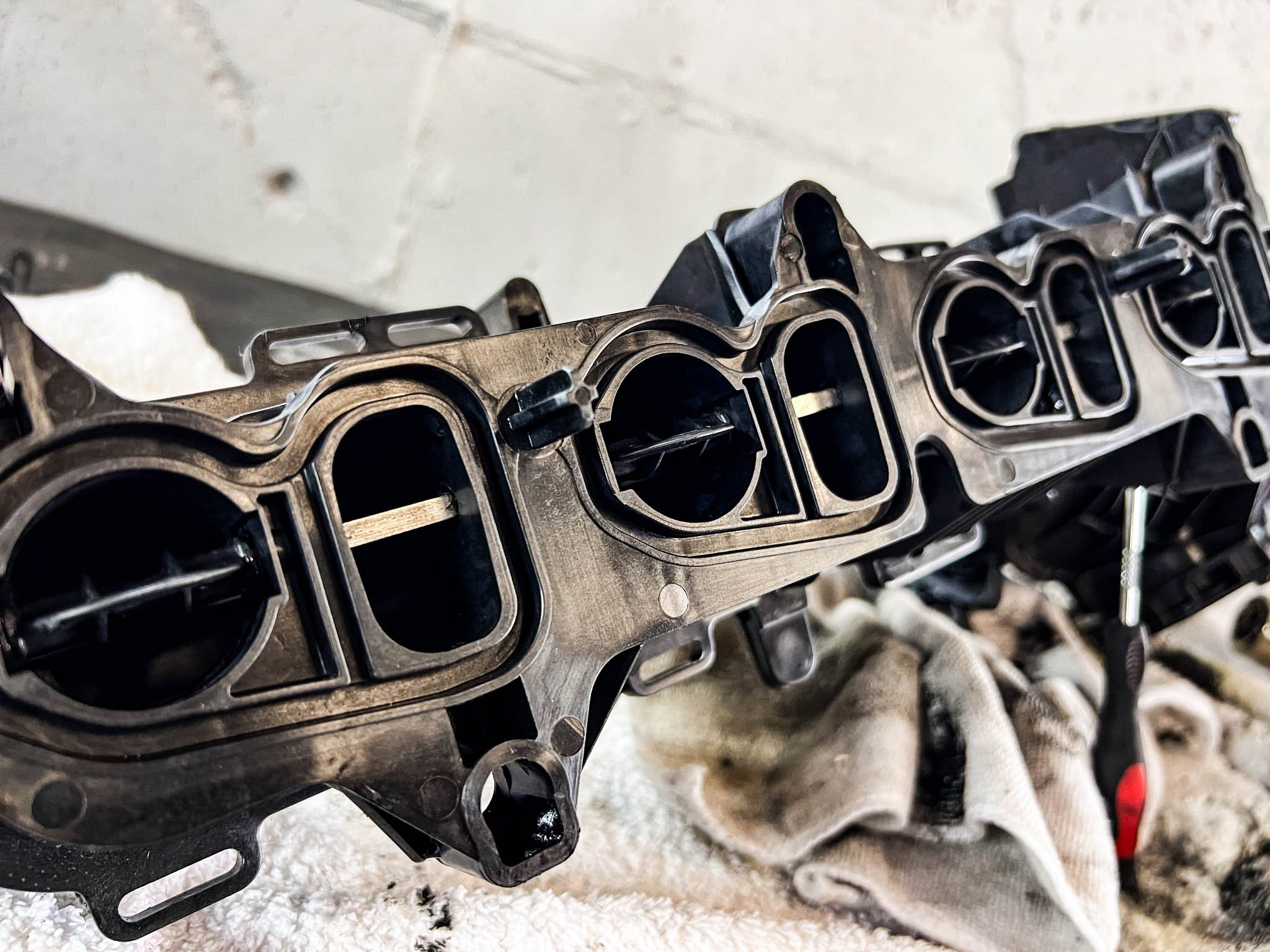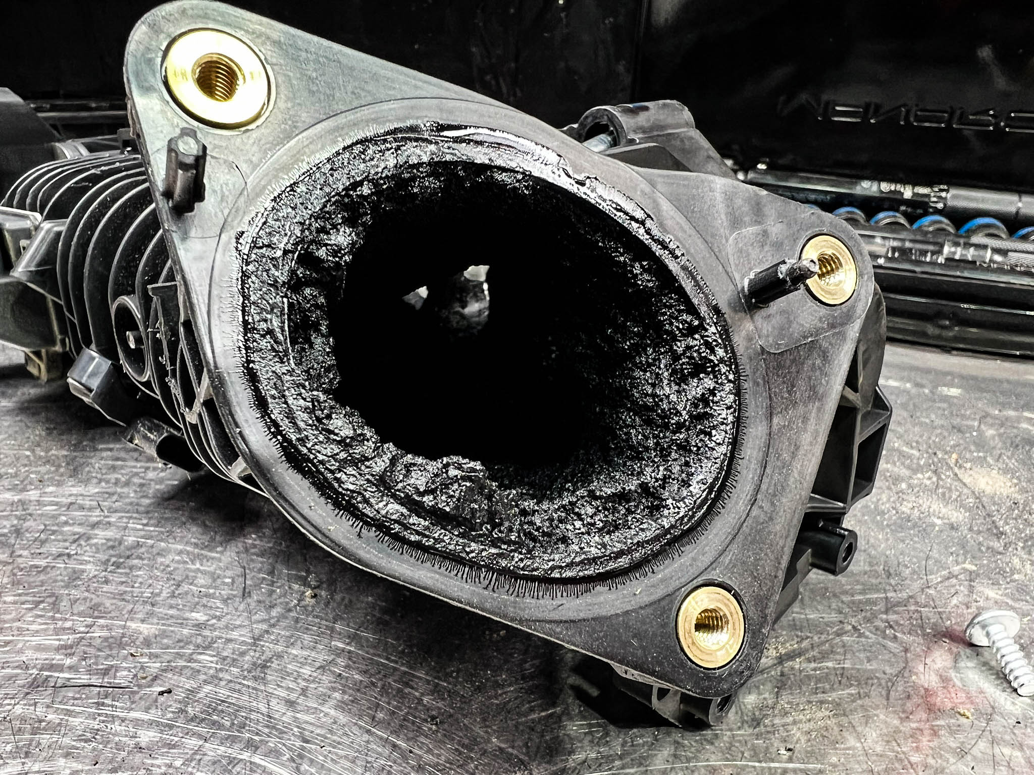 Intake Manifold Removal and Inspection We completely remove your intake manifold to assess contamination levels. This allows us to inspect components that are impossible to see with the manifold installed, including swirl flap condition and EGR passage contamination.